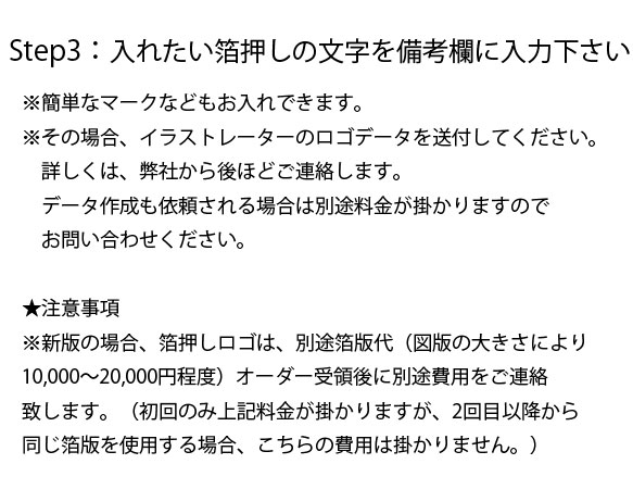 *箔押しをご希望の場合、こちらにご希望の文字を入れてください。
