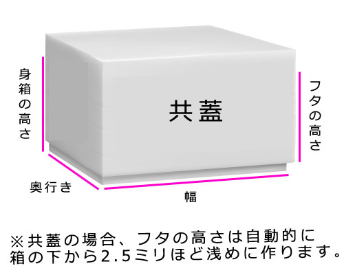 「箱の種類(共蓋または浅蓋)」と箱のサイズをご指定ください。